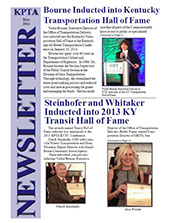 her praise of Bourne and Kentucky, “Kentucky gets it.” Under Bourne’s leadership, Kentucky Public Transit has accomplished an almost impossible feat – nine years in a row with zero deficiencies found during three Federal Transit Administration (FTA) intense, on-site reviews covering 27 different areas.Bourne was voted one of the first three inductees into the Kentucky Transit Hall of Fame in 1999.