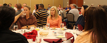 Sally Baskey entertains the audience during the Roadeo Dinner at the 2019 KPTA Conference