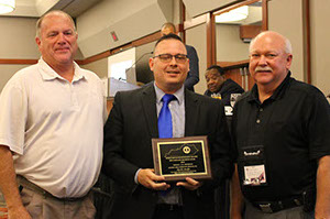 Jeremy Thompson, OTD presents GRITS 2019 Best NEMT Compliant Reporting Award with Barry Duncan and Dan Lanham