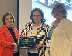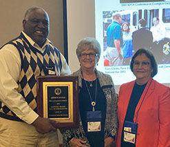 Gail Mayeux, OTD presents Shirley Cummins and Freda Parsons, RTEC the 2021 Outstanding Grants Administration Award