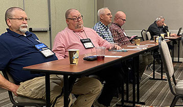 Oliver Barber (KPTA Lobbyist) Taylor Klocke (CTAA), Jennifer Kirchner (KBT), John Cox (Kentucky Chamber) and Art Guzzetti (APTA virtual) legislative session at the 2021 KPTA Conference