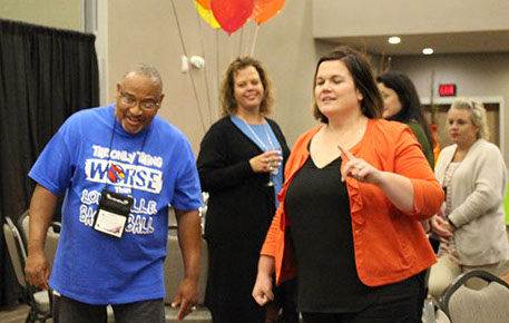 Susan Perkins, OTD and Arthur Boykin, PATS visiting the KPTA Vendor Booths at the 2019 KPTA Conference,