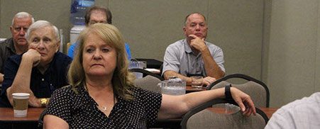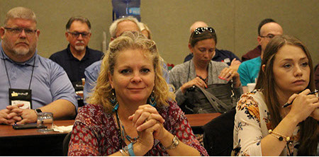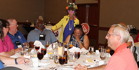 Sally Baskey entertains the audience during the Roadeo Dinner at the 2019 KPTA Conference