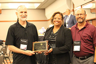 Chuck Steinhofer, Louisville Wheels is presented the 2019 KPTA Volunteer of the Year Award from Dr. Yvette Taylor, FTA