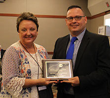 Kenney Etherton, Fulton County Transit is presented the Outstanding Public Transit Management Award from Dr. Yvette Taylor, FTA at the 2019 KPTA Conference