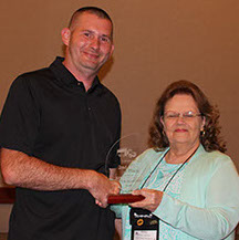 Mitchell Williams, RTEC is presented the 2nd place award for the 2019 KPTA Roadeo by Shirley Cummins, RTEC