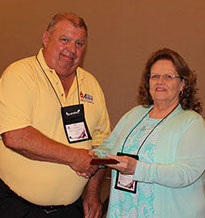 Shirley Cummins, KPTA Vice President presents the KPTA Life Time Achievement Award to Beecher Hudson, KPTA President and Lou. Wheels