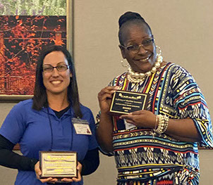 Gail Mayeux, OTD presents Shirley Cummins and Freda Parsons, RTEC the 2021 Outstanding Grants Administration Award