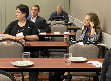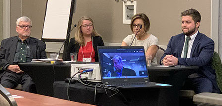 Oliver Barber (KPTA Lobbyist) Taylor Klocke (CTAA), Jennifer Kirchner (KBT), John Cox (Kentucky Chamber) and Art Guzzetti (APTA virtual) legislative session at the 2021 KPTA Conference